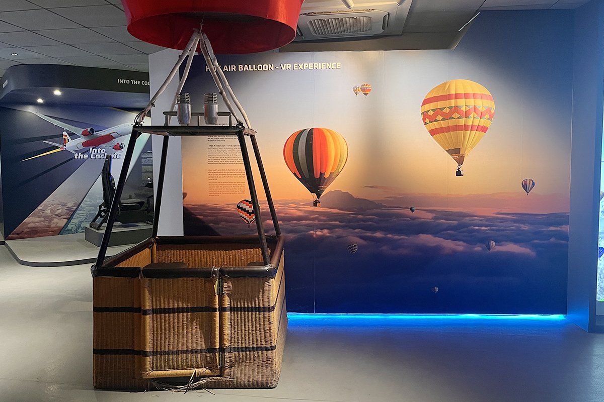 By wearing the VR Headset and step into a virtual sky, experience the thrill of floating thousands of feet above the ground—without ever Virtual Reality (VR) is not just a digital experience—it is a powerful integration of mechanical systems, sensors, and real-time simulation leaving the museum. The VR Hot Air Balloon Experience combines cutting-edge virtual reality with real scientific principles to give you a breath-taking journey through the skies.Behind every VR experience lies a combination of Motion tracking systems that detect head and body movement with high precision. A Mechanical feedback component that simulate real-world sensations like motion, vibration, and balance with actuated platforms that tilt, rotate, or elevate to mimic physical movement